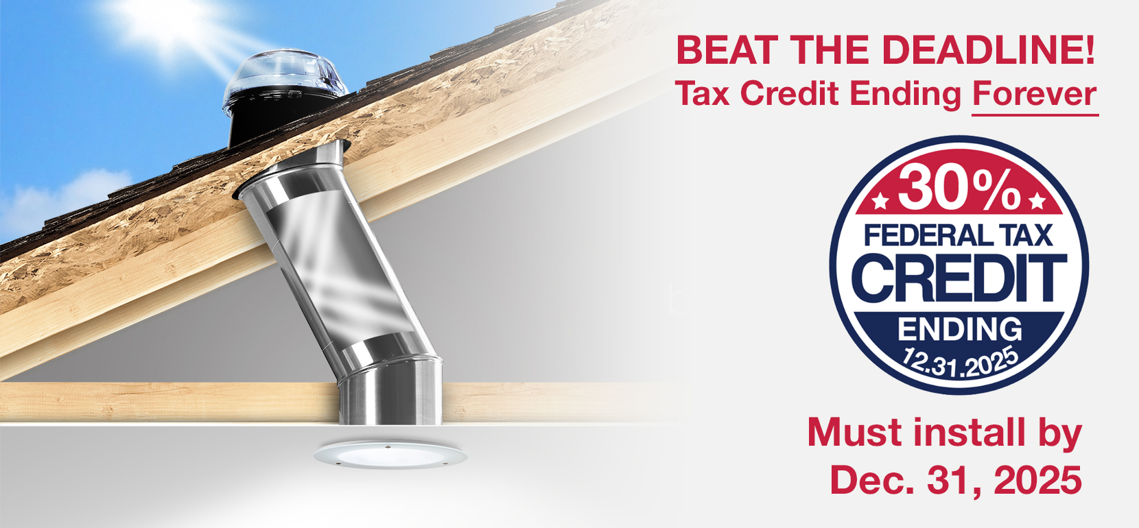 Love the natural light of tubular daylighting systems, but want the ability to adjust the brightness? Our new Daylight Dimmer model includes a remote-controlled, solar-powered baffle that opens and closes at the touch of a button. Now you can adjust the light in your space from bright to dark, and everything in between.